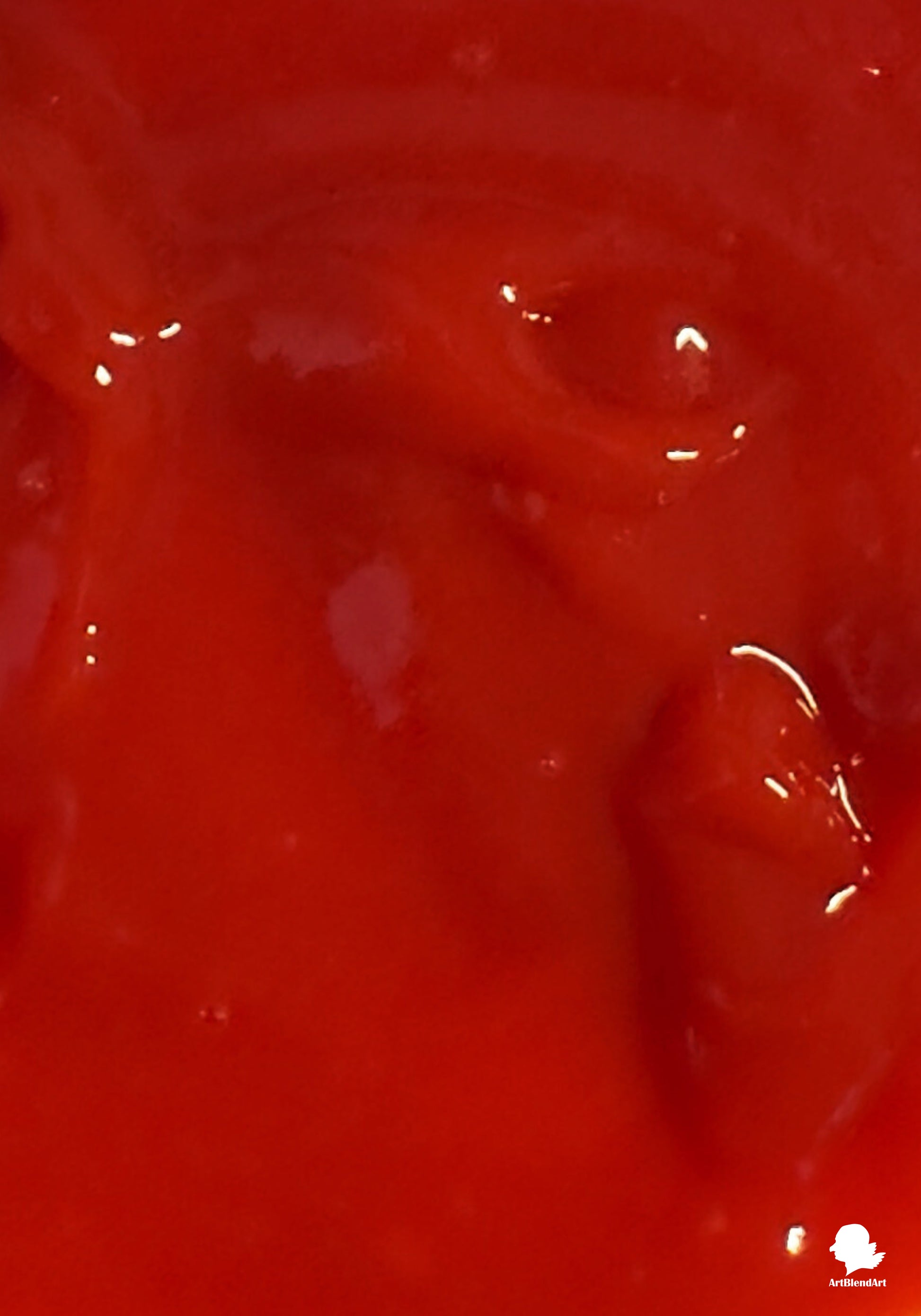 A close encounter with the abstract textures of something familiar—yet unsettling. Swirling in red, this image toes the line between nourishment and raw emotion, capturing the primal unease that can lurk in the everyday. Is it food? Flesh? A feeling? The ambiguity is the invitation.
